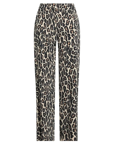 wide-leg pants, twill, leopard-print, no appliqués, high waisted, regular fit, hook fastenings, 1 button, multipockets, stretch, dry clean, do not bleach, do not tumble dry
