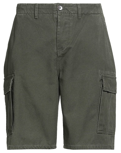 cargo shorts, woven, solid color, brand logo, high waisted, regular fit, button fastenings, multipockets, machine wash or dry clean, do not bleach, tumble dry