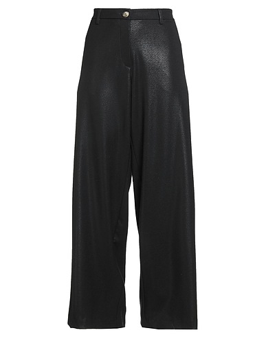 wide-leg pants, crepe, metallic, solid color, no appliqués, mid rise, regular fit, zipper fastening, 1 button, multipockets, stretch, dry clean, do not bleach, do not tumble dry