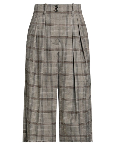 culottes, woven, glen plaid, pleated, high waisted, belt loops, relaxed fit, zipper fastening, button fastenings, raw-cut hem, multipockets, stretch, hand wash or dry clean, do not bleach, do not tumble dry