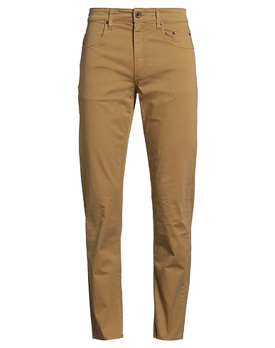 casual pants, twill, solid color, brand logo, mid rise, belt loops, tapered leg, slim fit, 1 button, zipper fastening, multipockets, stretch, machine wash or dry clean, do not bleach, tumble dry