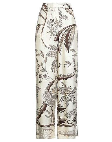 wide-leg pants, twill, floral-print, no appliqués, high waisted, relaxed fit, button fastenings, zipper fastening, multipockets, dry clean, do not bleach, do not tumble dry