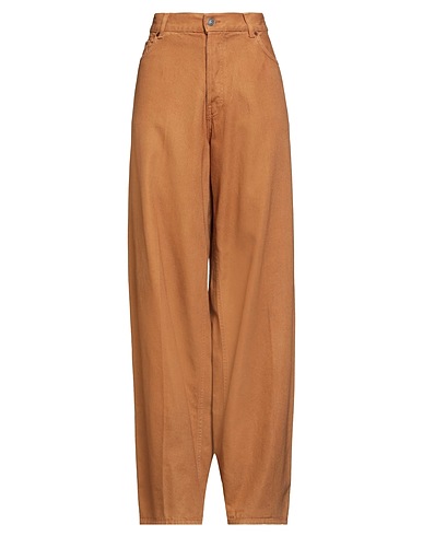 baggy jeans, denim, solid color, brand logo, colored wash, high waisted, regular fit, snap fastenings, slit pockets, machine wash or dry clean, do not bleach, tumble dry