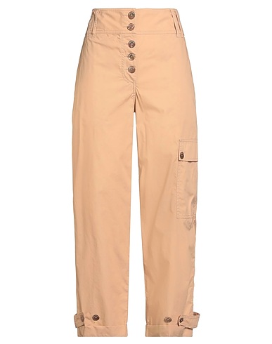 cargo pants, woven, solid color, brand logo, high waisted, belt loops, relaxed fit, button fastenings, multipockets, machine wash or dry clean, do not bleach, do not tumble dry