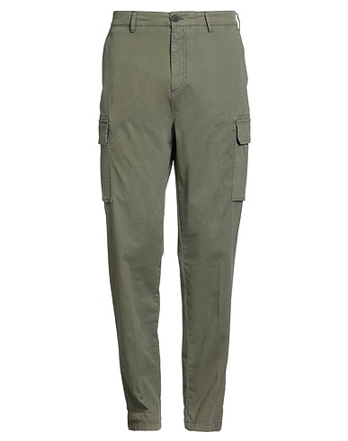 cargo pants, twill, stretchy fabric, solid color, brand logo, high waisted, regular fit, 1 button, zipper fastening, slit pockets, bellows pockets, machine wash or dry clean, do not bleach, do not tumble dry