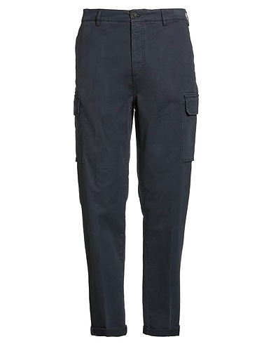 cargo pants, twill, stretchy fabric, solid color, brand logo, high waisted, regular fit, 1 button, zipper fastening, slit pockets, bellows pockets, machine wash or dry clean, do not bleach, do not tumble dry