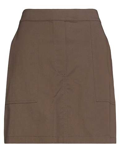 flared skirt, twill, stretchy fabric, solid color, no appliqués, drawstring waist, unlined, patch pockets, flap pocket, dry clean, do not bleach, do not tumble dry