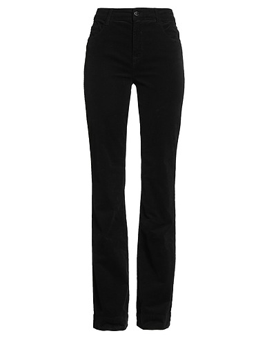 flared pants, corduroy, stretchy fabric, solid color, brand logo, mid rise, belt loops, regular fit, zipper fastening, 1 button, five pockets, machine wash, do not bleach, do not tumble dry