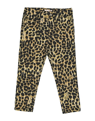 twill, stretchy fabric, leopard-print, brand logo, elasticized waist, zipper fastening, 1 button, five pockets, machine wash, do not bleach, do not tumble dry