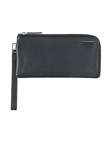 pebbled-leather, solid color, brand logo, leather lining, zipper fastening, card slots, contains non-textile parts of animal origin