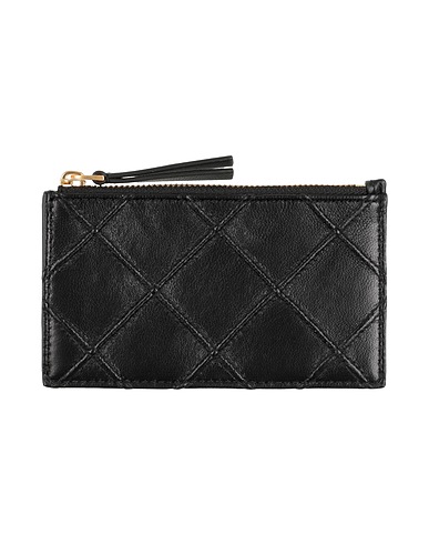leather, quilted, solid color, brand logo, fully lined, internal zip pocket, card slots, contains non-textile parts of animal origin