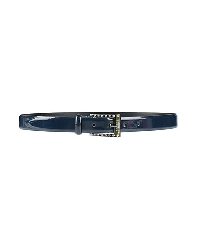 belt, coated fabric, patent-effect, solid color with appliqués, crystals, brand logo, buckle, regular belt