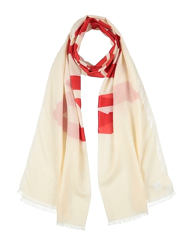 scarf, woven, solid color with print, fringes, dry clean, do not bleach, do not tumble dry