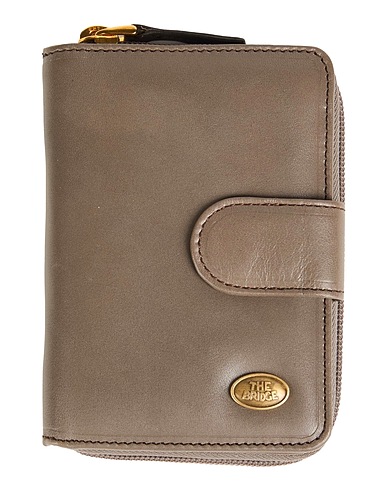 wallet, glossed-leather, solid color, brand logo, snap fastenings, card slots, external pocket with zip, contains non-textile parts of animal origin
