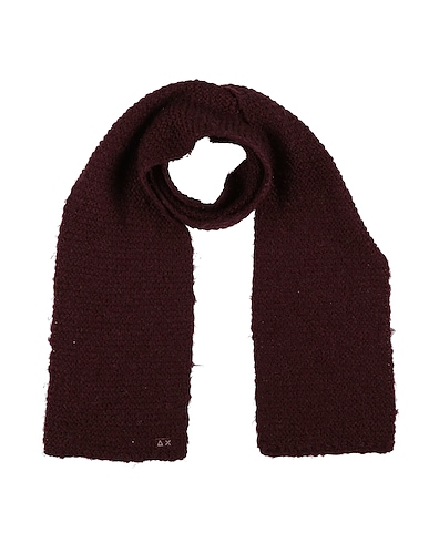 scarf, knitted, medium-weight knit, solid color, brand logo, hand wash or dry clean, do not bleach, do not tumble dry