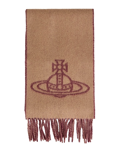 scarf, wool, lightweight knit, two-tone, brand logo, fringes, dry clean, do not bleach, do not tumble dry
