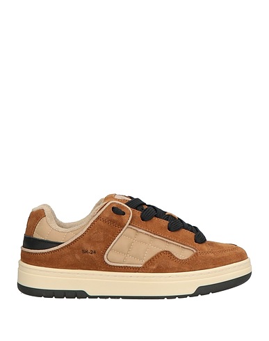 low-top sneakers, suede, shell, solid color, brand logo, fully lined, lace-up, round toe, rubber cleated sole, contains non-textile parts of animal origin