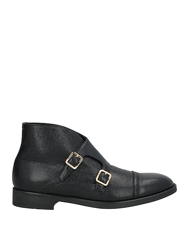 ankle boots, textured-leather, solid color, no appliqués, leather lining, buckle fastening, round toe, flat, rubber sole, contains non-textile parts of animal origin, small sized