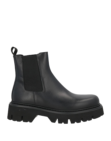 chunky boots, leather, solid color, no appliqués, leather lining, elasticized inserts, round toe, square heel, rubber heel, rubber cleated sole, contains non-textile parts of animal origin