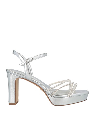 ankle strap sandals, coated fabric, metallic, solid color with appliqués, crystals, lined interior, buckle-fastening ankle strap, square toe, geometric heel, rubber sole