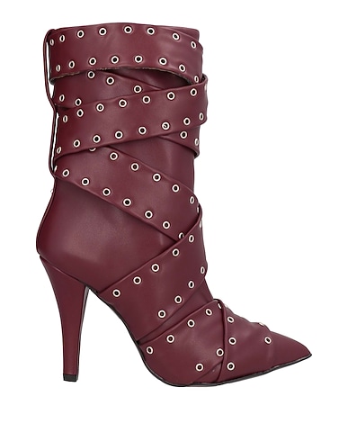 ankle boots, coated fabric, embellished, solid color with appliqués, leather lining, pointed toe, cone heel, rubber sole, contains non-textile parts of animal origin