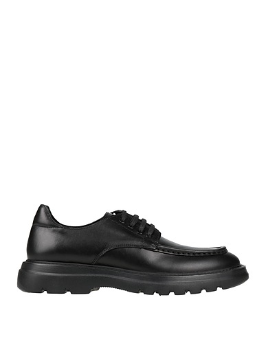 lace-up shoes, leather, brand logo, solid color, leather lining, round toe, low heel, rubber cleated sole, contains non-textile parts of animal origin