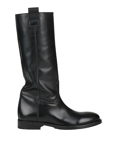 riding boots, leather, solid color, no appliqués, leather lining, round toe, flat, leather/rubber sole, handmade, contains non-textile parts of animal origin, large sized
