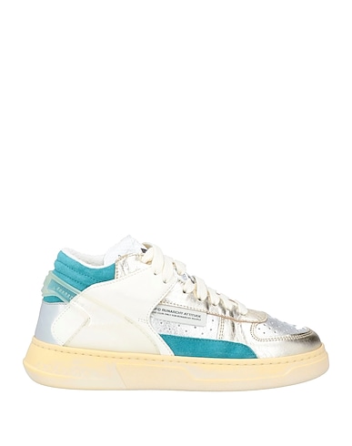 high-top sneakers, leather, metallic, multicolor, brand logo, fabric inner, lace-up, round toe, rubber sole, contains non-textile parts of animal origin