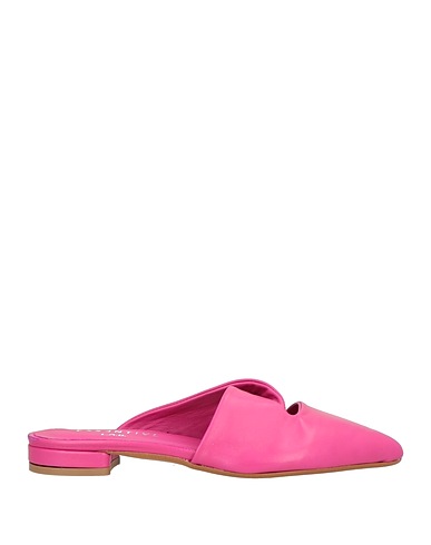 mules, leather, solid color, no appliqués, leather lining, pointed toe, flat, rubber sole, contains non-textile parts of animal origin