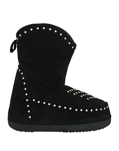 padded ankle boots, suede, solid color with appliqués, brand logo, studs, lined in shearling, round toe, flat, rubber cleated sole, contains non-textile parts of animal origin