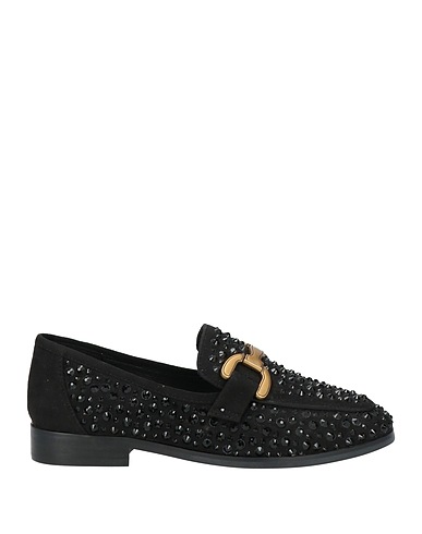 slippers, suede-effect fabric, crystals, embellished, solid color with appliqués, leather lining, round toe, flat, rubber sole, contains non-textile parts of animal origin