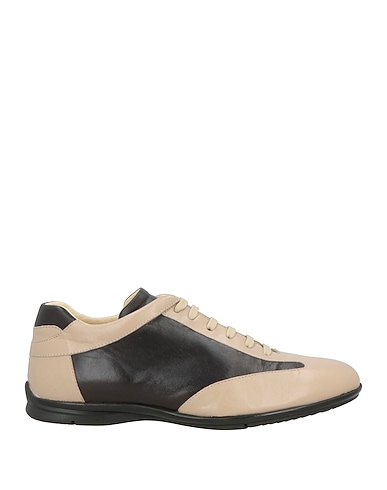low-top sneakers, leather, two-tone, no appliqués, leather lining, lace-up, round toe, rubber cleated sole, contains non-textile parts of animal origin