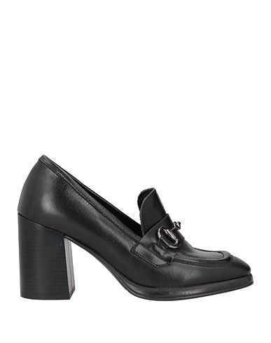 loafers, leather, solid color, embellished, leather lining, square toe, geometric heel, rubber sole, contains non-textile parts of animal origin