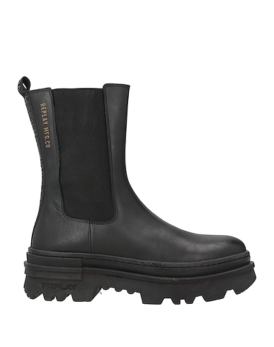 chunky boots, leather, solid color with print, brand logo, platform, leather lining, elasticized inserts, round toe, square heel, rubber heel, lug sole, contains non-textile parts of animal origin