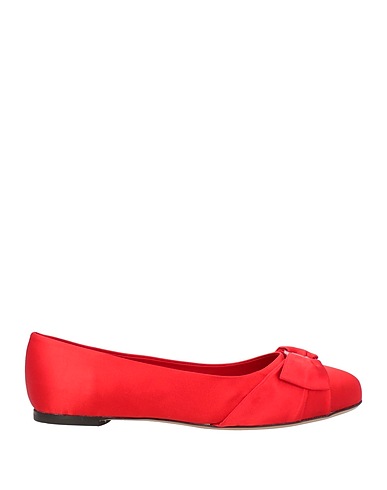 ballet flats, satin, solid color, brand logo, bow-detailed, leather lining, round toe, flat, leather sole, contains non-textile parts of animal origin