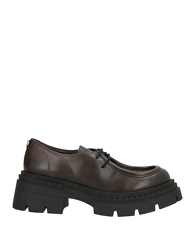 chunky lace-ups, synthetic material, solid color, no appliqués, leather lining, round toe, square heel, rubber cleated sole, contains non-textile parts of animal origin