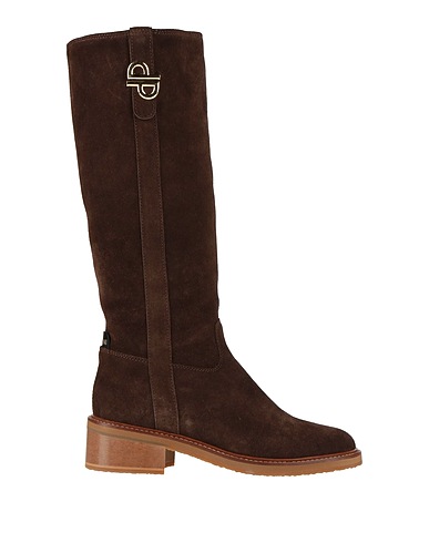 padded boots, suede, solid color, brand logo, sherpa interior, round toe, square heel, rubber sole, contains non-textile parts of animal origin