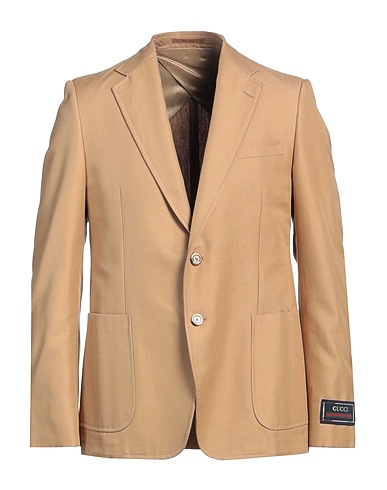 single-breasted blazer, canvas, solid color, brand logo, lapel collar, long sleeves, partially lined, button fastenings, patch pockets, rear slit, contains non-textile parts of animal origin, dry clean, do not bleach, do not tumble dry
