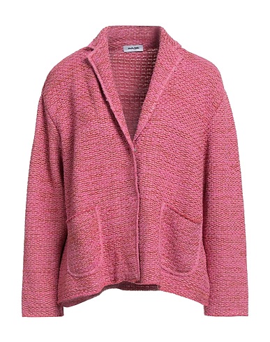 single-breasted blazer, knitted, metallic, medium-weight knit, multicolor, no appliqués, lapel collar, long sleeves, unlined, snap fastenings, patch pockets, fringed hem, hand wash or dry clean, do not bleach, do not tumble dry