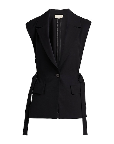 cool wool, stretchy fabric, solid color, strap detailing, unlined, button fastenings, flap pockets, dry clean, do not bleach, do not tumble dry