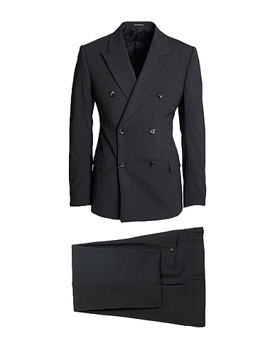 double-breasted suit, cool wool, stretchy fabric, solid color, no appliqués, lapel collar, long sleeves, shoulder pads, fully lined, button fastenings, flap pockets, one chest pocket, contains non-textile parts of animal origin, dry clean, do not bleach, do not tumble dry, get your look right with this designer outfit, suited for business meetings or special occasions