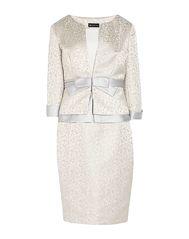 dress set, satin, jacquard, multicolor, beads, crystals, crewneck, single-breasted , 3/4 length sleeves, fully lined, zipper fastening, hook fastenings, rear slit, dry clean, do not bleach, do not tumble dry