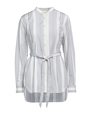 woven, belt, striped, mandarin collar, long sleeves, button fastenings, no pockets, machine wash or dry clean, do not tumble dry, do not bleach, shirt