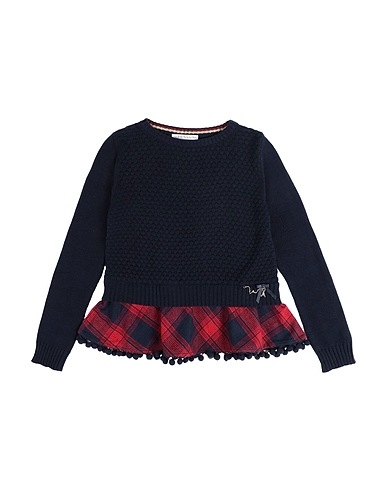 flannel, knitted, lightweight knit, bow-detailed, brand logo, tartan pattern, crewneck, long sleeves, without pockets, machine wash, do not bleach, do not tumble dry