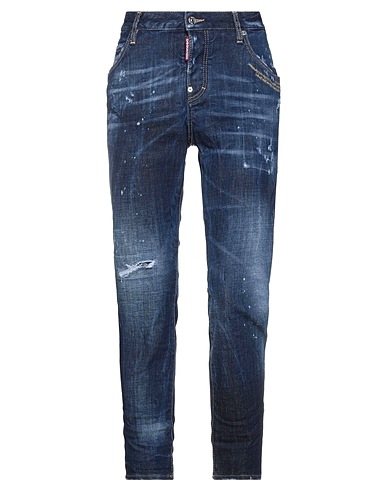 denim, worn effect, faded, logo, solid color, dark wash, classic neckline, mid rise, front closure, button closing, multipockets
