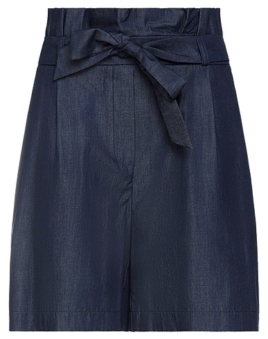 denim, brand logo, belt, solid color, dark wash, three pockets, high waisted, elasticized waist