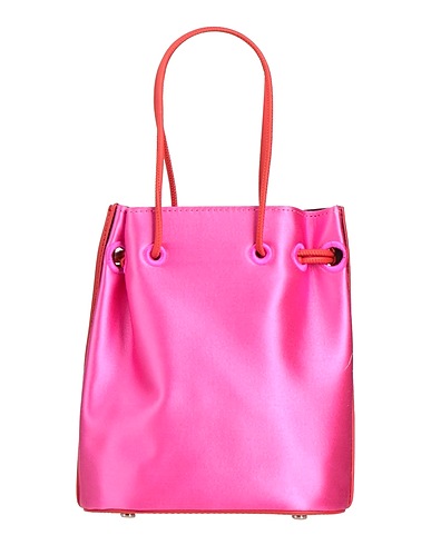 bucket bag, satin, leather, two-tone, no appliqués, double handle, detachable shoulder strap, feet at base, small size, contains non-textile parts of animal origin