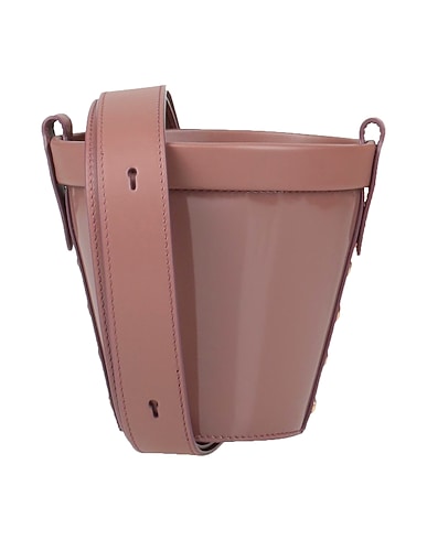 bucket bag, leather, solid color with appliqués, studs, drawstring fastening, leather lining, adjustable shoulder strap, small size, contains non-textile parts of animal origin