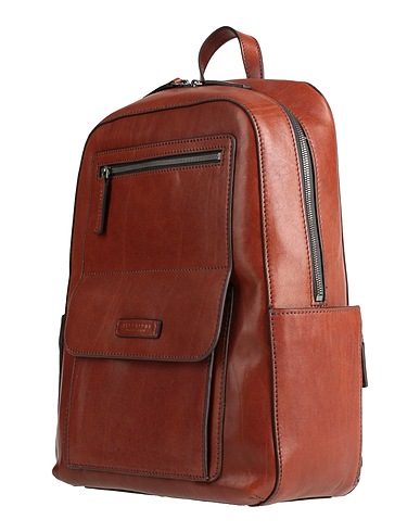 backpack with zipper, leather, solid color, brand logo, zipper fastening, fully lined, internal pockets, external pockets, bag handle, medium size, contains non-textile parts of animal origin