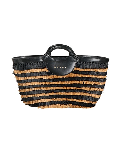 shopper bag, leather, raffia, striped, brand logo, internal zip pocket, double handle, large size, contains non-textile parts of animal origin